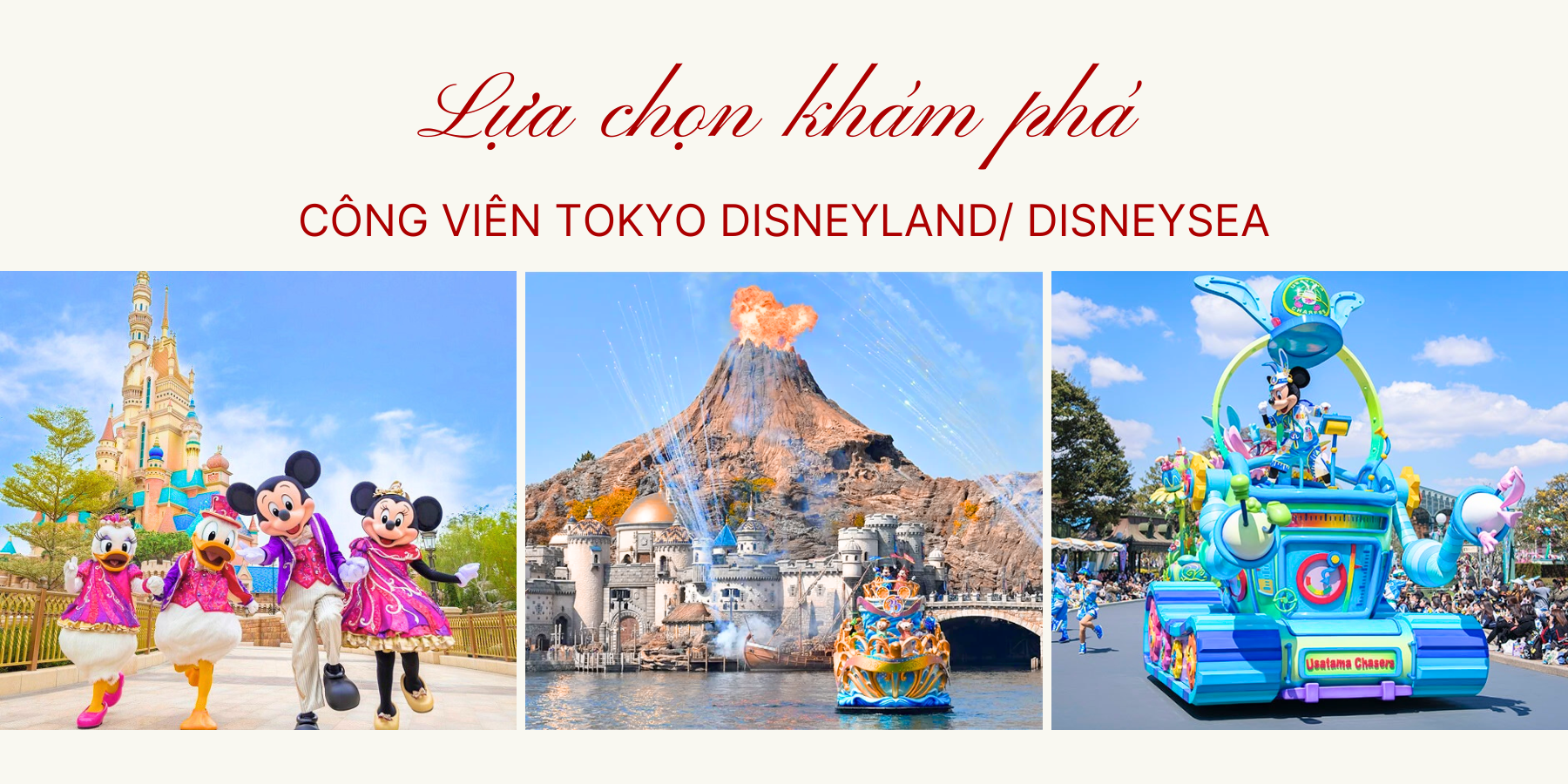 Tokyo Disneyland hoặc Tokyo DisneySea – Hành trình khám phá Thế giới Cổ tích. Chi tiết liên hệ với Bluetour tại thời điểm đặt tour.
